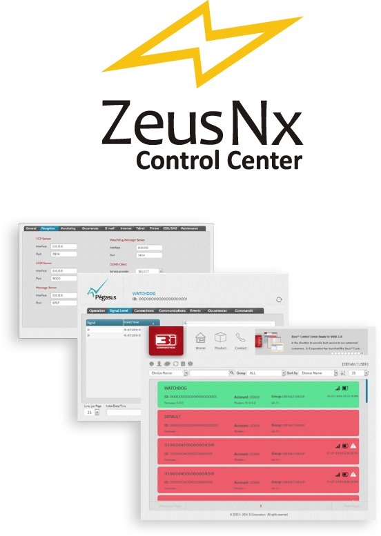 The Zeus™ Nx Server is the primary element in the Zeus™ Nx Suite. It is an extremely reliable multi-platform server whose main task is to receive all the communication packets transmitted by our devices (via various channels like TCP, UDP, CSD and SMS), save them to the database and send events/occurrences to the alarm monitoring software like a conventional receiver, simulating protocols like Ademco-685, Sur-Gard MLR2-DG, Sur-Gard via TCP/IP and Radionics D6600.