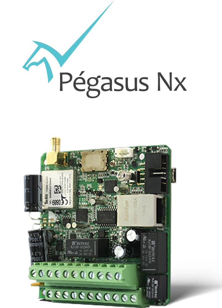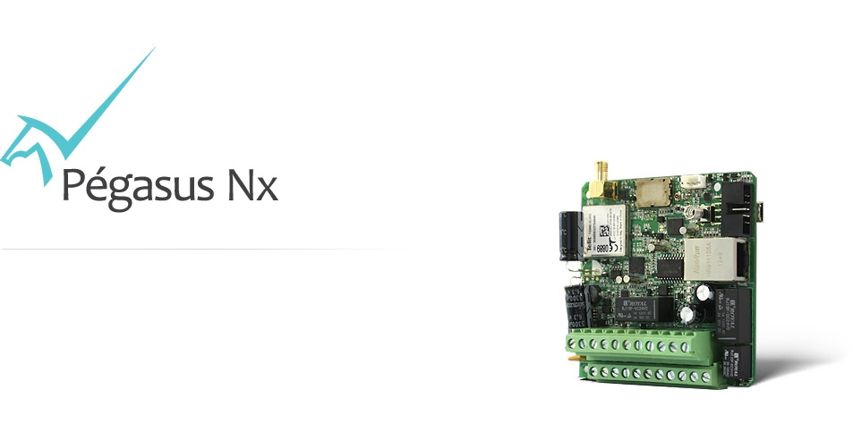 Cuando energizado, el Pégasus Nx entra a la red Ethernet (TCP/UDP, IP fija o dinámica), GPRS (canal de datos) o Wi-Fi (2x puntos de acceso), y por ella se conecta al Zeus Server. Establece un canal de comunicación entre el cliente monitoreado e la central de monitoreo de alarmas, permitiendo la transmisión inmediata de todos los eventos generados por el panel de alarmas en el protocolo CONTACT ID.